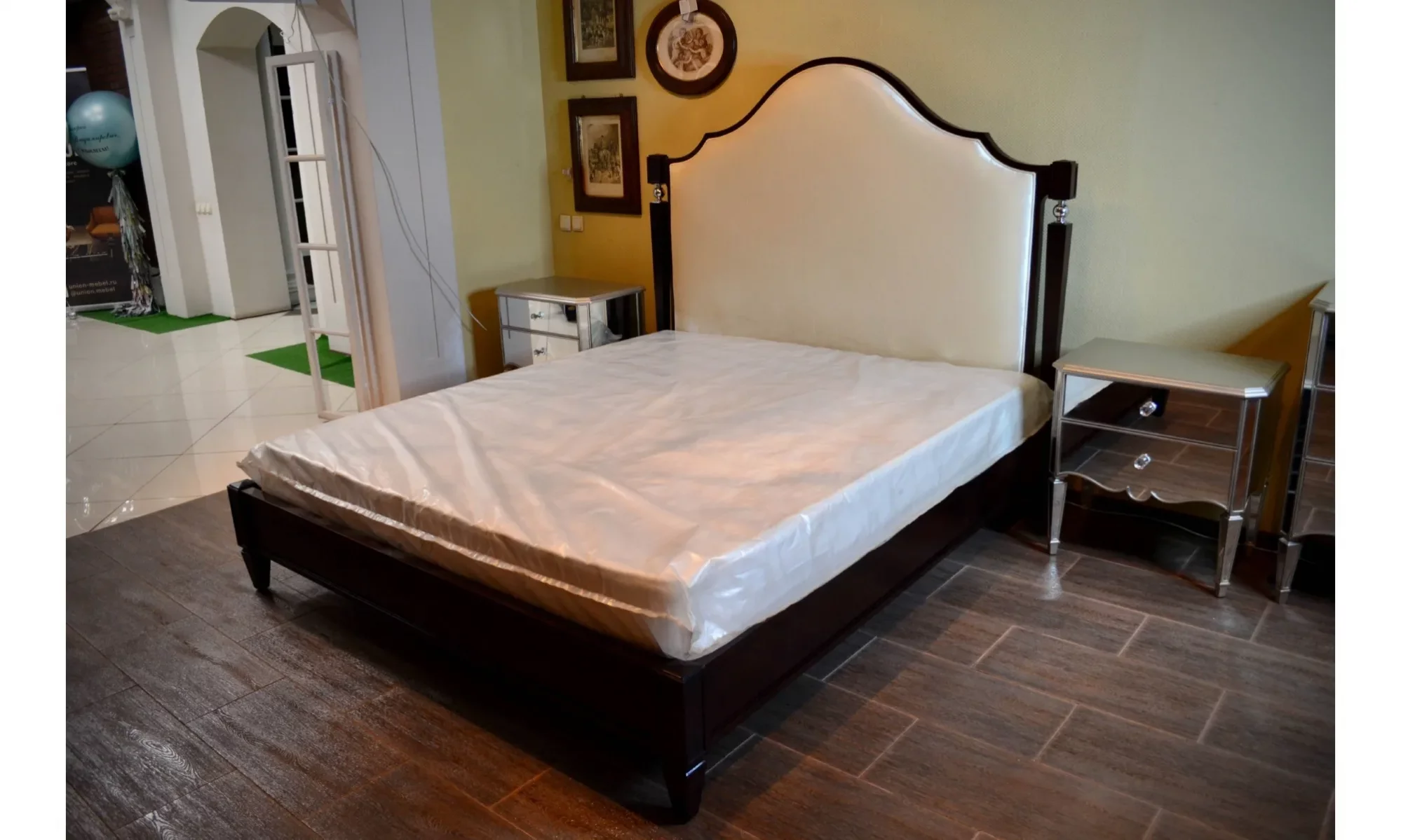 Двуспальная, На ножках, Мягкое изголовье